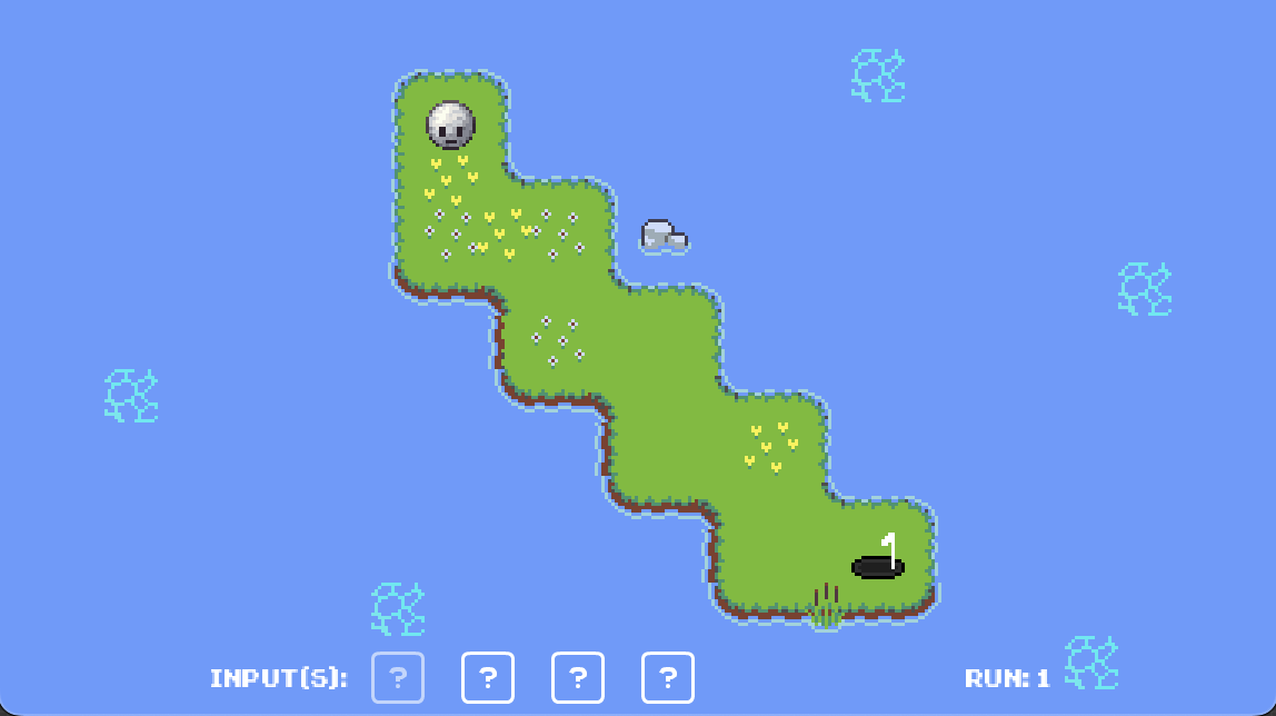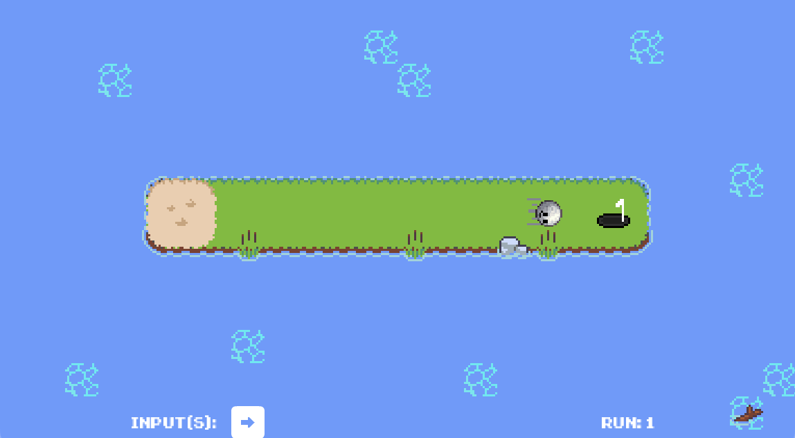- Plan your shot by filling in a short sequence of directions (up, down, left, right) using "WASD" or the arrow keys. Watch as Ballsy follows your directions to his cozy home in a hole or to his death...